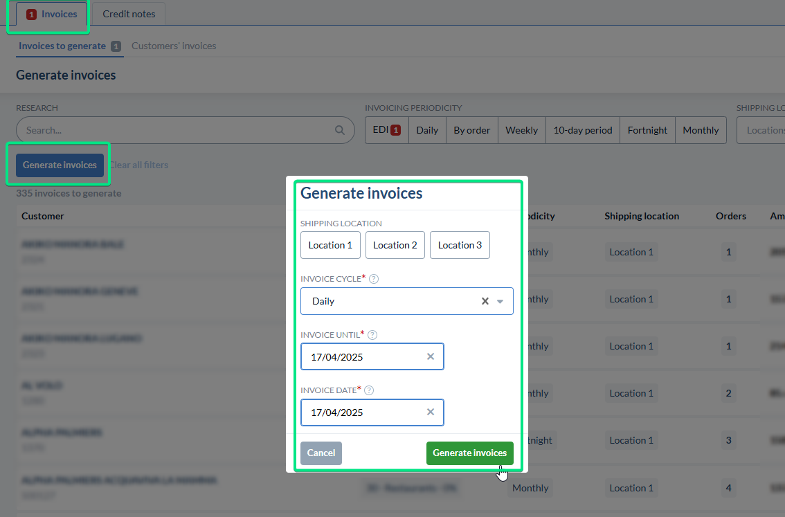 Finally, click on Generate Invoices